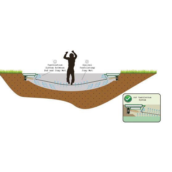 De dubbel conische veren van de trampoline, die 17,7 centimeter lang zijn, zorgen voor een hoge sprong en een fijne zachte landing. Het unieke ontluchtingssysteem van de springmat en beschermrand zorgt voor een open structuur zodat de lucht eenvoudig kan ontsnappen tijdens het springen. Daarnaast heeft de InTerra groundlevel trampoline van EXIT Toys een stevige beschermrand van 35 cm breed en 2 centimeter dik voorzien van een voetbeschermingssysteem. Hierdoor kun je nooit met je voeten tussen de veren komen tijdens het trampolinespringen. Ook is het trampolineframe gegalvaniseerd en gepoedercoat, waardoor roest verleden tijd is. Al met al is de InTerra trampoline van EXIT Toys een duurzame investering op het gebied van buitenspeelgoed!