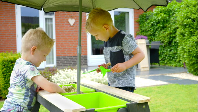 Water is ook ontzettend leuk om te gebruiken voor een rollenspel. Met de Yummy buitenkeuken en zandbak met keuken van EXIT Toys lijkt het net of je in een echte keuken bent. Beide keukens hebben namelijk een écht werkende waterkraan, waardoor je de beste moddersoep kunt maken, je handen kunt wassen en zelfs de vaat kunt doen. Welke spellen kun jij allemaal bedenken met water in je eigen speelkeuken? Laat de waterpret maar beginnen!
