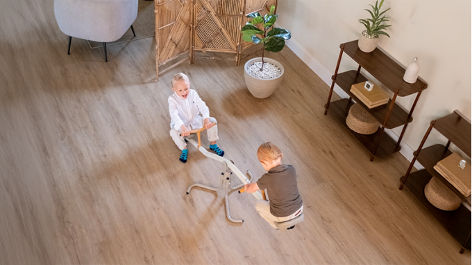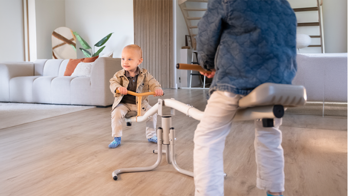 De My First ronddraaiende wipwap is geen log toestel dat alleen op één plek werkt, maar een speelelement dat meebeweegt met de dag. Schijnt de zon, dan gaat hij mee naar buiten. Regent het, dan maak je binnen ruimte vrij en spelen de kinderen gewoon verder. De wipwap heeft een eigentijds ontwerp met pasteltinten, zodat hij niet alleen in de tuin, maar ook in huis rustig oogt.