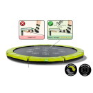 De EXIT Twist inground trampoline is een grote ronde trampoline met omkeerbare beschermrand in de kleuren groen en grijs. Voor deze trampoline graaf je een komvormige kuil in de grond waar de trampoline in wordt gezet voor een mooi en veilig resultaat.