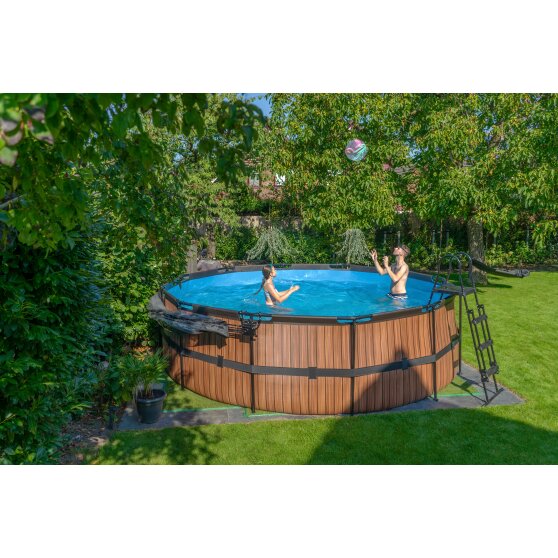 EXIT Wood zwembad ø450x122cm met filterpomp - bruin
